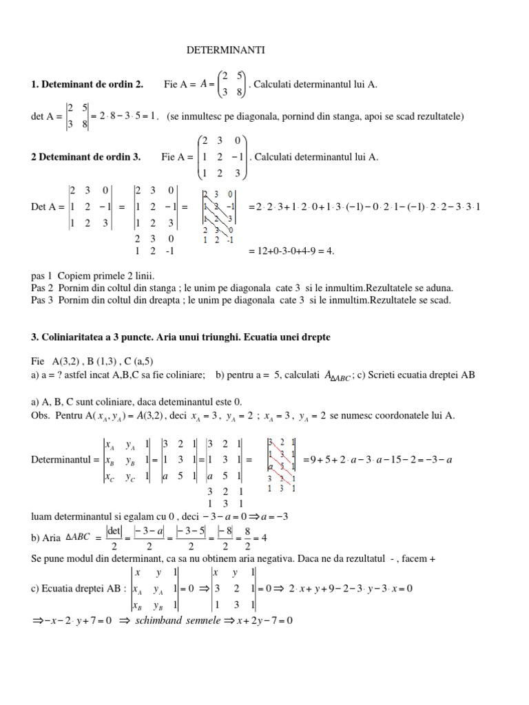Formule Matematica Determinanti Ecuatia Dreptei Sub Forma De Determinant Conditia De Coliniaritate A 3 Puncte