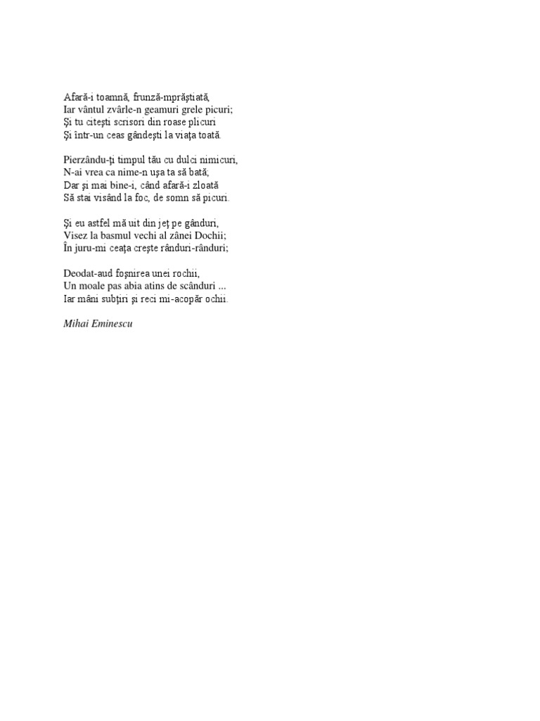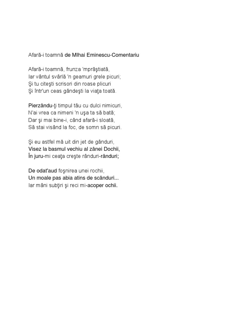 Afară I Toamna De Mihai Eminescu Comentariu