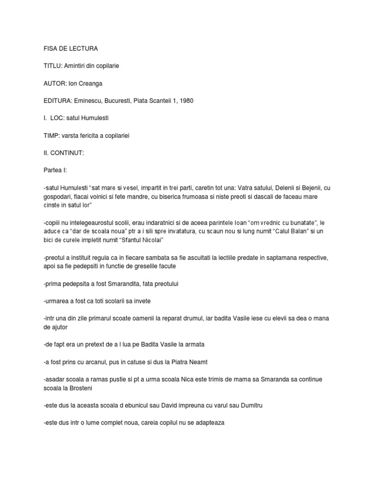 Pdf Fisa De Lectura Amintiri Din Copilarie Pdf Alexandru Savin Academia Edu