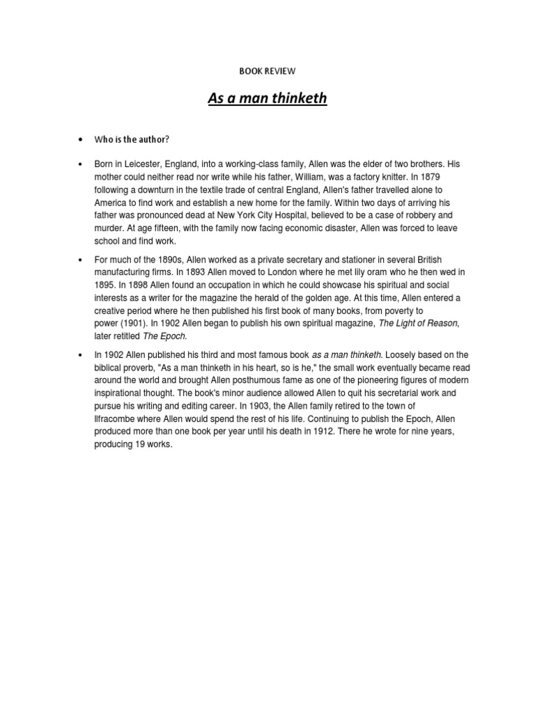 As A Man Thinketh Book Review Theliferpg