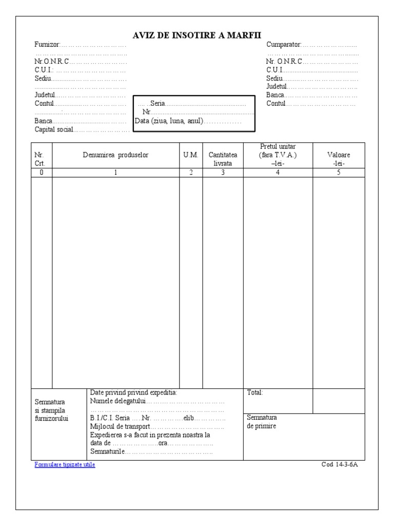 Aviz De Insotire A Marfii Formular Word Formulare Tipizate Gratuite