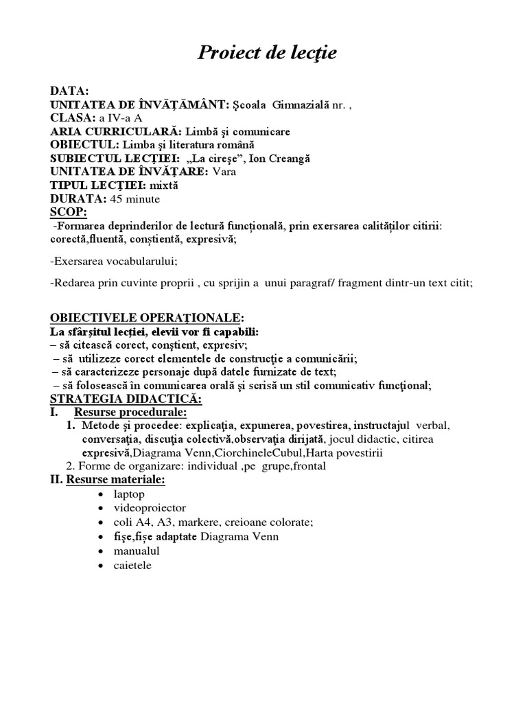 La Cirese Proiect Didactic Pdf