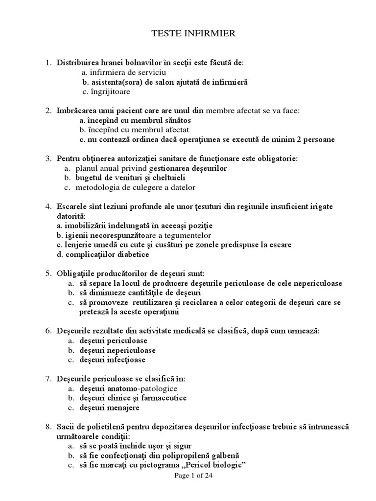 Chestionare Pentru Infirmiere Si Raspunsuri