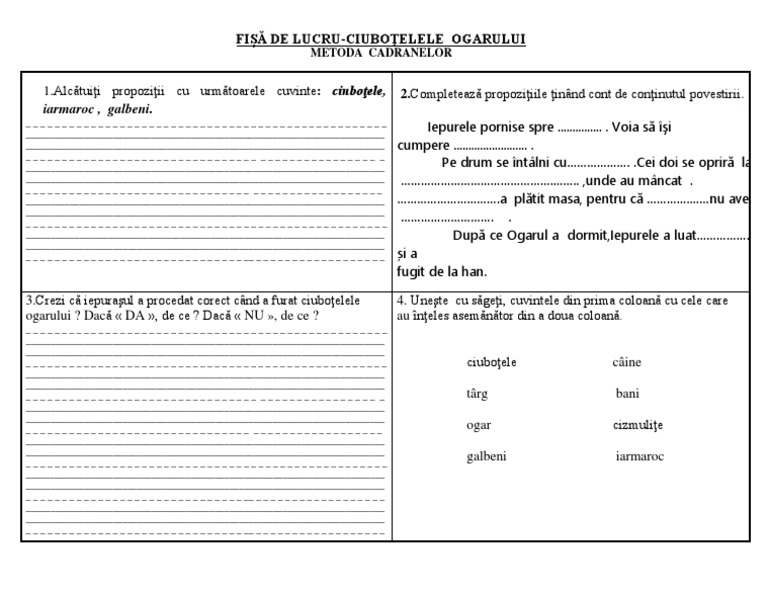 Ciubotelele Ogarului Fisa De Lucru Clasa 2