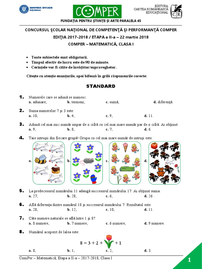 Comper 2018 Incepe Etapa I Modele De Subiecte La Matematica Si Limba Romana