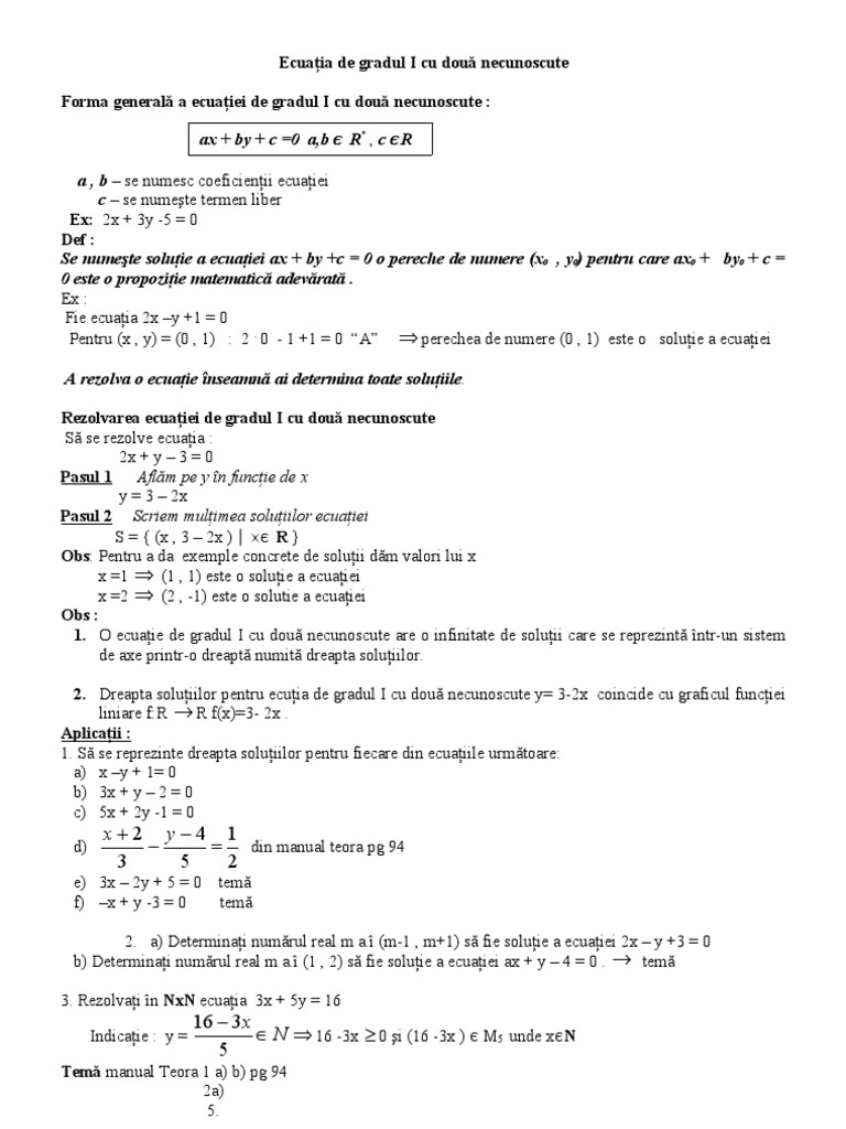 0ecuatia De Gradul I Cu Doua Necunoscute