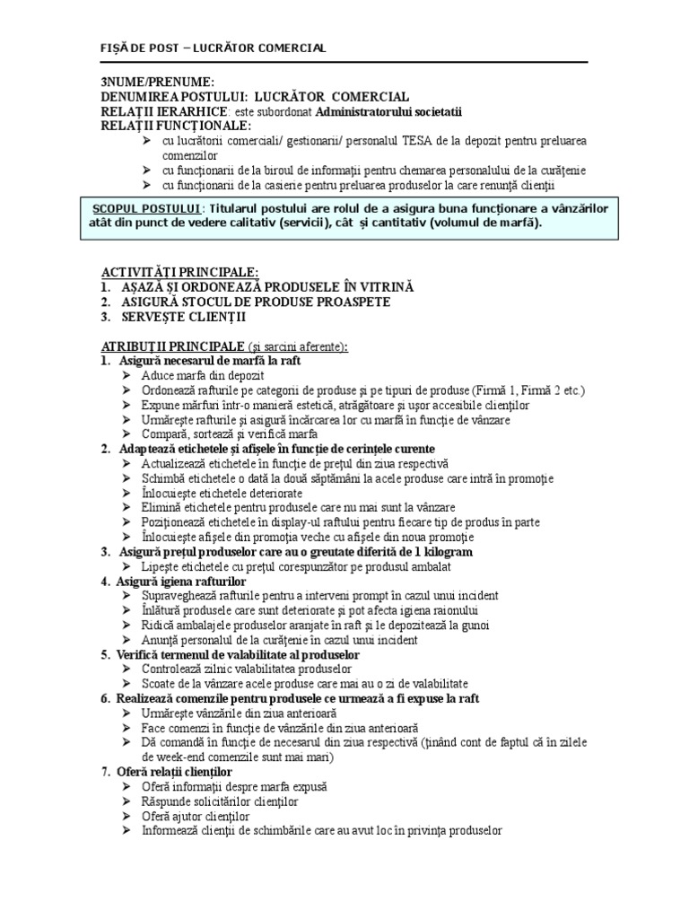 Fisa De Post Lucrator Comercial Var 2 Copy