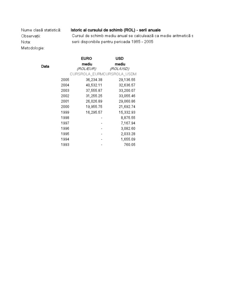 Bnr Istoric Al Cursului De Schimb Rol Serii Anuale