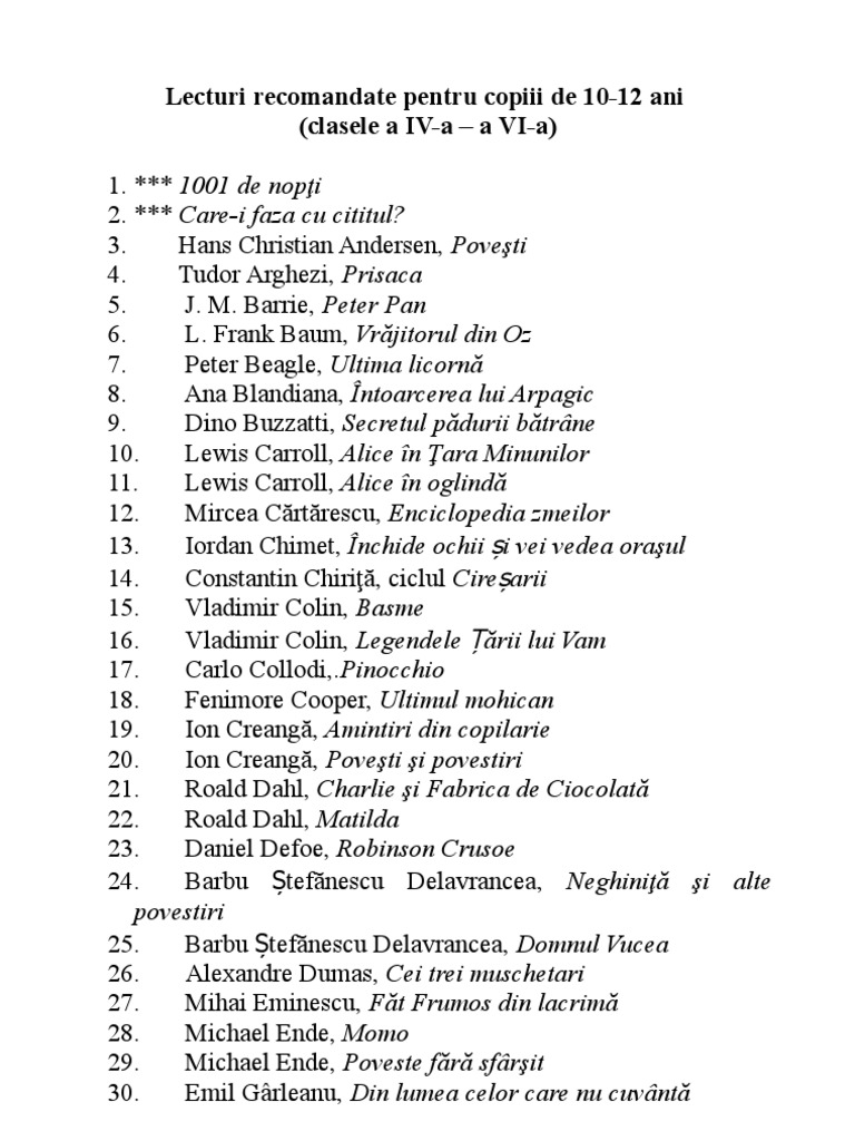 Lecturi Obligatorii Pentru Clasa A V