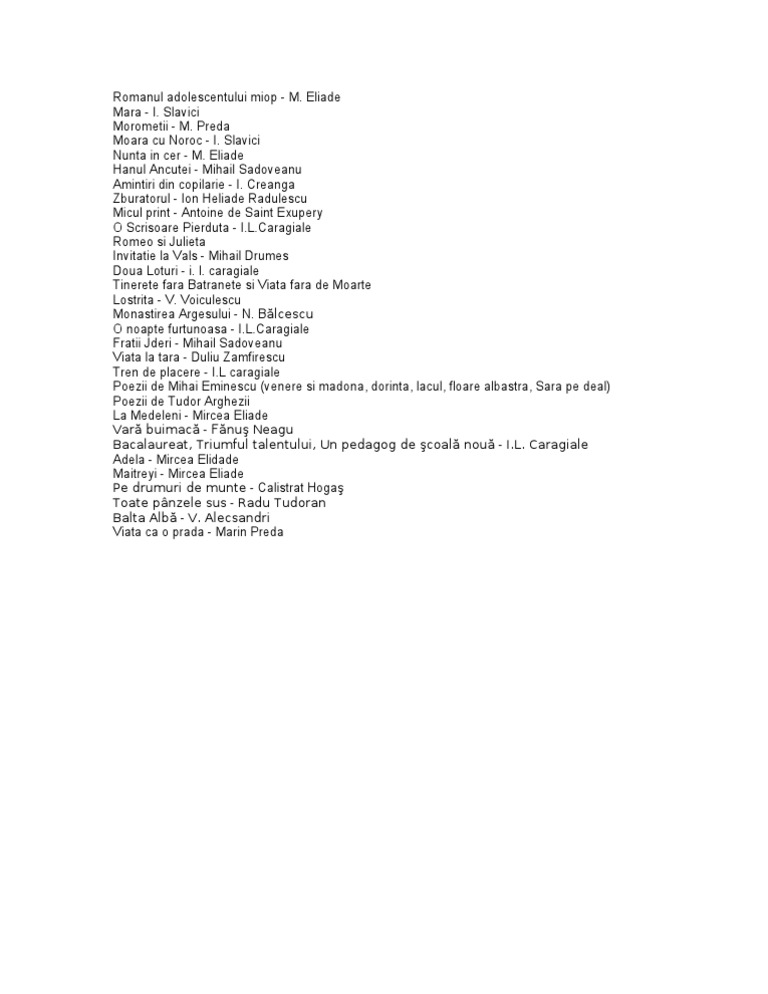 Lectura Obligatorie Si Suplimentara Clasa A Ix A