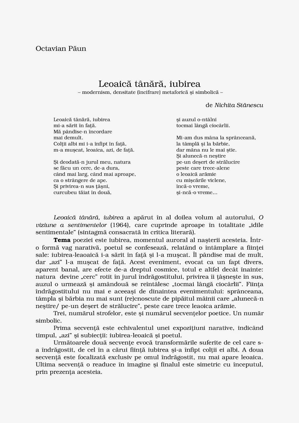 Nighita Stanescu Leoaica Tanara Iubirea Comentariu Bac