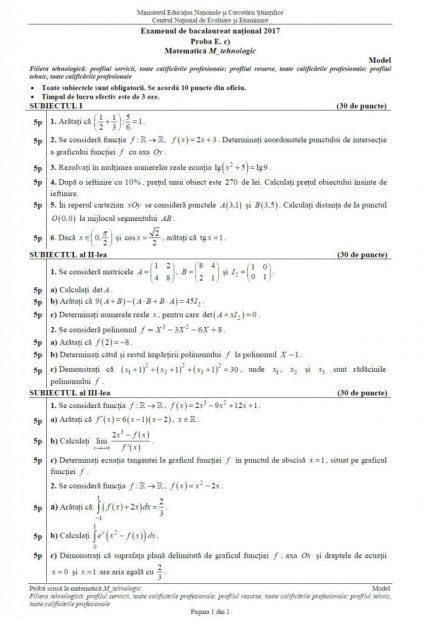 Subiecte și Barem De Corectare Bac 2018 La Matematică Au Fost Publicate Stirileprotv Ro