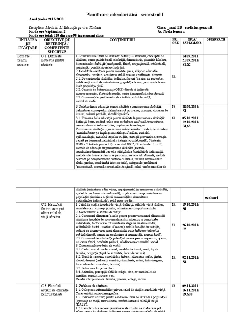 Planificare Educatie Pentru Sanatate