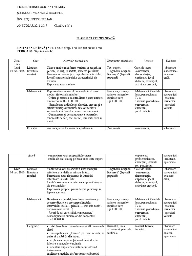Planificare Integrata Cls A Iv A Ica 14 09 2018