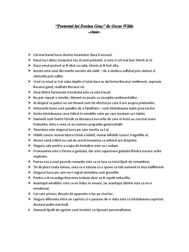 Citate Portretul Lui Dorian Gray
