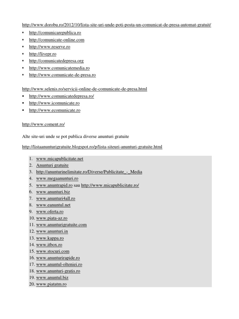 Lista Cu Site Uri De Anunturi Gratuite Internationale