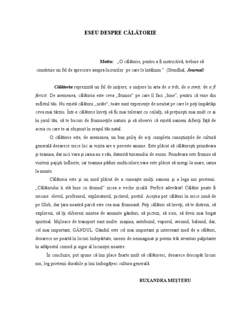 Eseu Despre Călătorie Ruxandra Meșteru