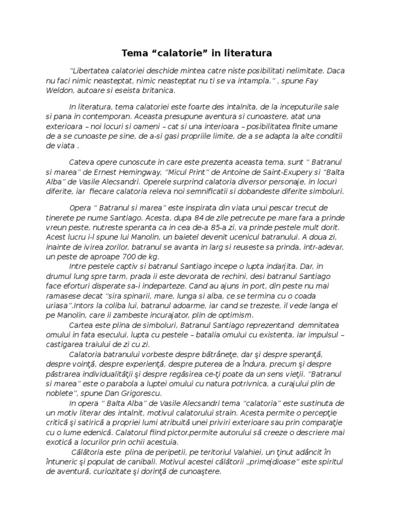 Tema Calatorie In Literatura