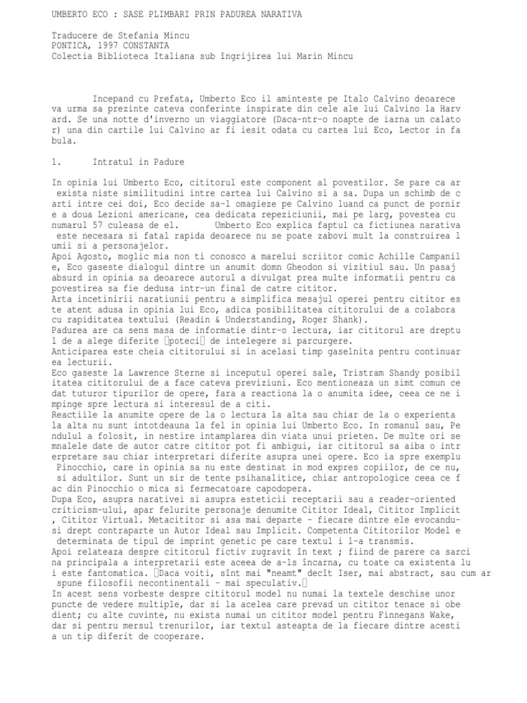 Referat Umberto Eco Si Plimbarile Prin Padurea Narativa Romana 324431