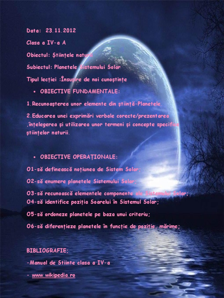 Universul Si Sistemul Solar Proiect De Lectie