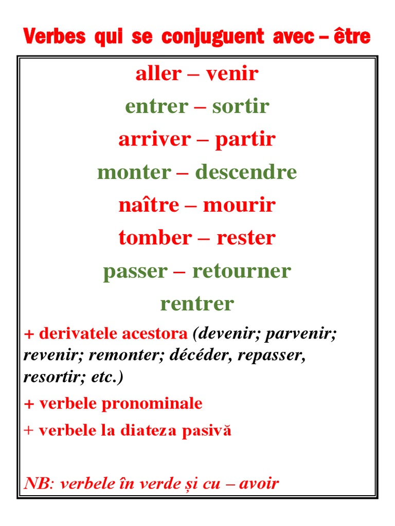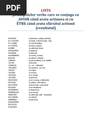 Aller a merge arriver a sosi partir a pleca venir a veni descendre a coborî monter a. Verbele de miscare si cele care indica schimbari formeaza pc cu verbul etre. Se conjugă cu auxiliarul avoir majoritatea verbelor. Aveti nevoie doar de un card bancar si sa apasati pe butonul donate iar de restul se ocupa echipa.