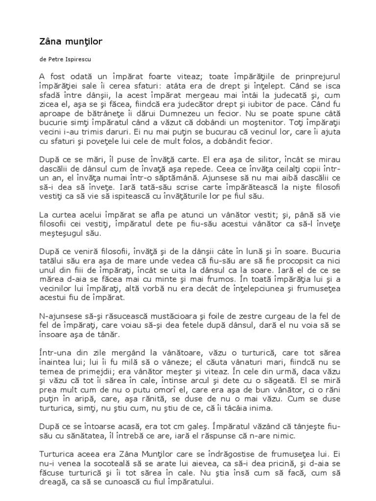 Zana Munților De Petre Ispirescu Rezumat Colectionara De Carti